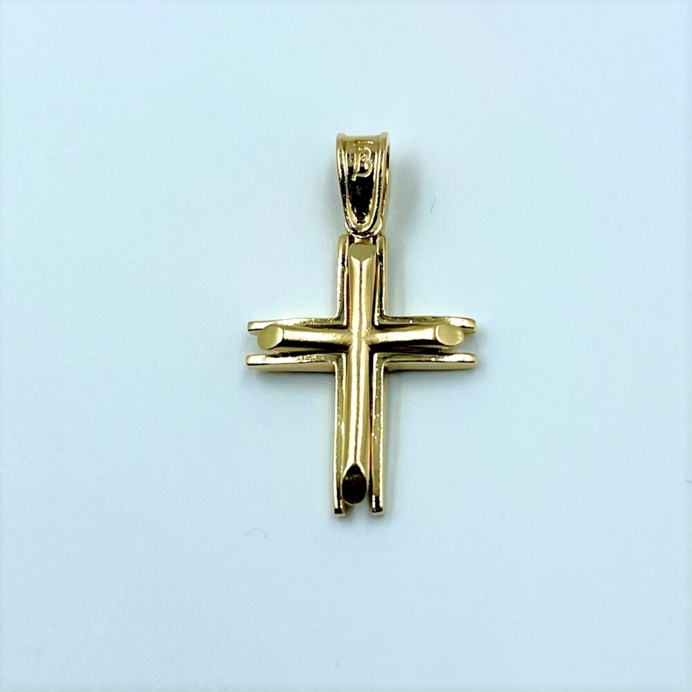 14K YELLOW DOUBLE SIDED GLOSSY MATTE CROSS FOR MEN
