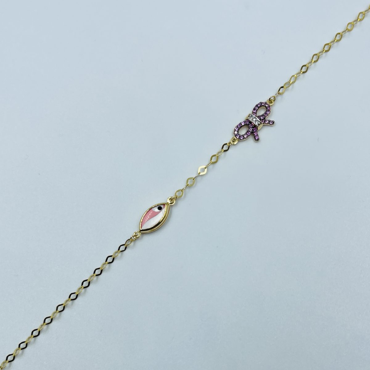 ΠΑΙΔΙΚΟ ΒΡΑΧΙΟΛΙ 14 ΚΑΡΑΤΙΩΝ ΜΕ ΡΟΖ ΜΑΤΙ & ΜΩΒ ΣΤΟΙΧΕΙΟ