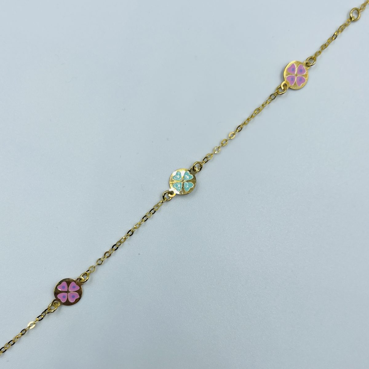 ΠΑΙΔΙΚΟ ΒΡΑΧΙΟΛΙ ΚΙΤΡΙΝΟ 14Κ ΜΕ ΤΕΤΡΑΦΙΛΕΣ ΚΑΡΔΙΕΣ