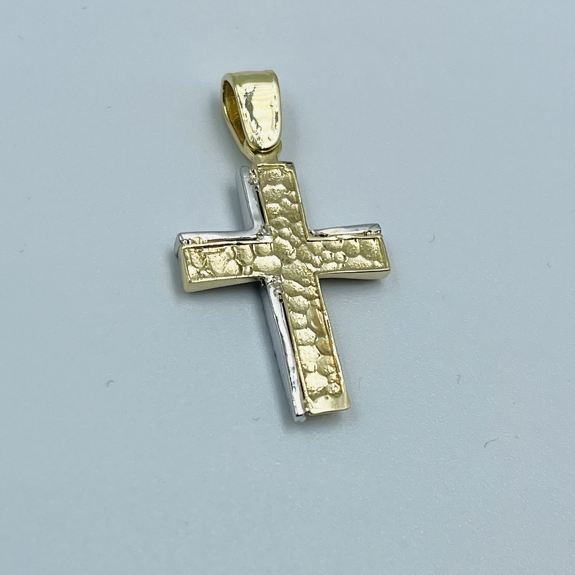ΣΤΑΥΡΟΣ ΓΥΝΑΙΚΕΙΟΣ ΔΙΧΡΩΜΟΣ 14Κ 3.1χ1.7 ΕΚ ΔΙΠΛΗΣ ΟΨΕΩΣ ΜΕ ΚΡΙΚΟ