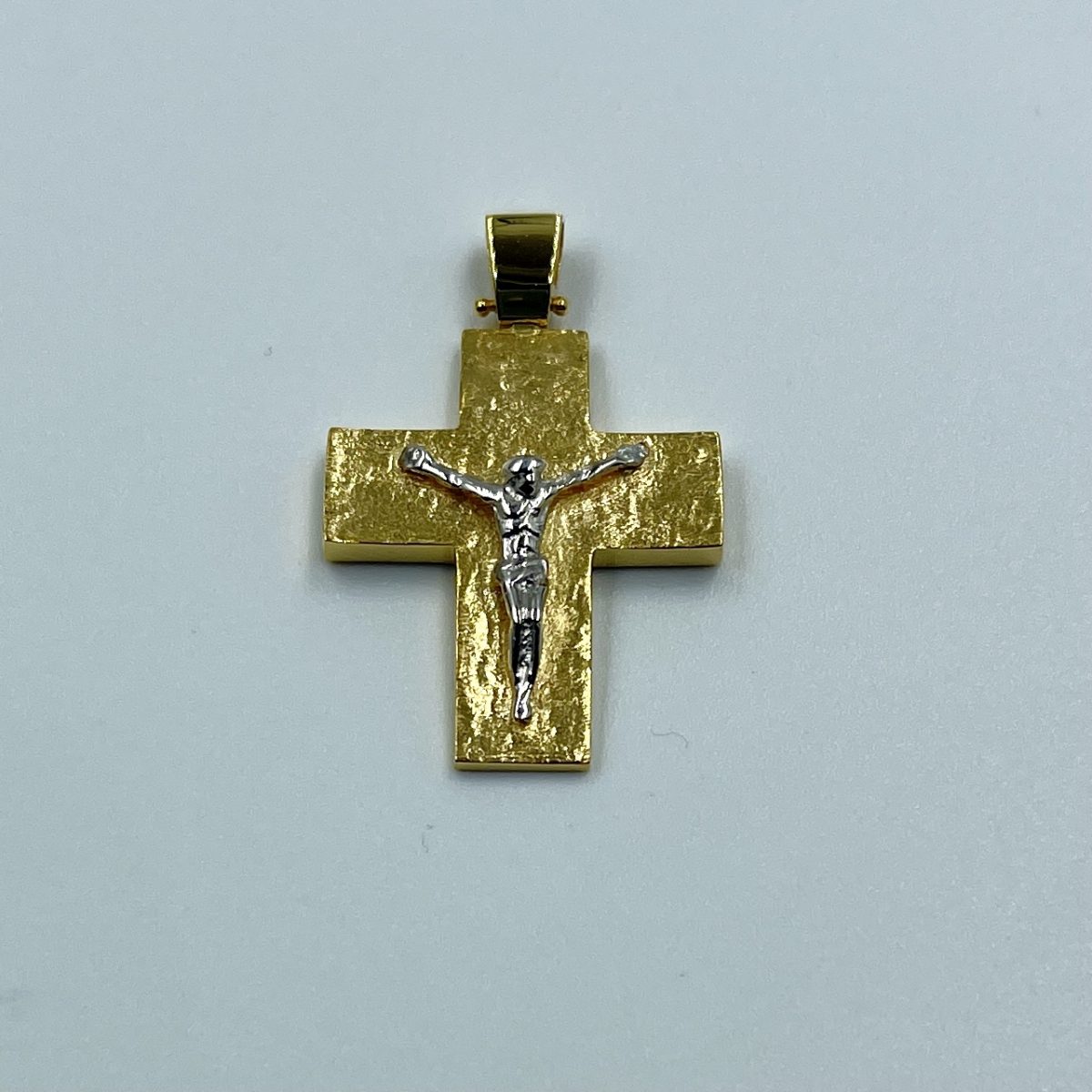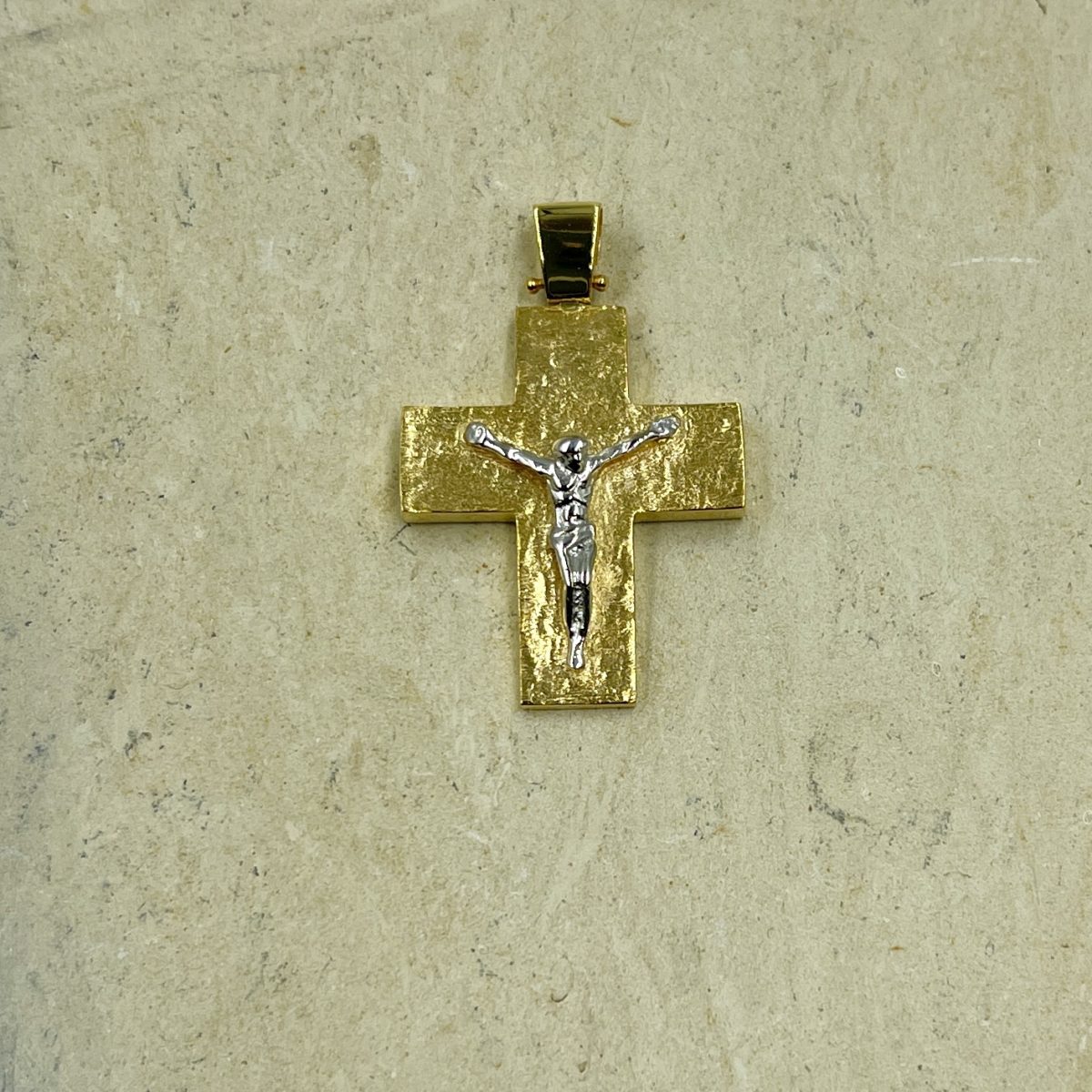 ΧΕΙΡΟΠΟΙΗΤΟΣ ΑΝΔΡΙΚΟΣ ΣΤΑΥΡΟΣ, 18Κ ΔΙΧΡΩΜΟΣ 5,4Χ2,2 ΕΚΑΤΟΣΤΑ